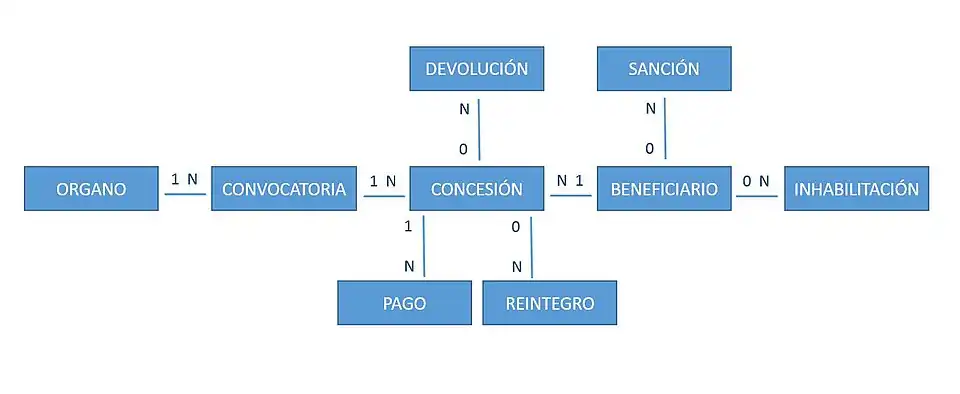 Las principales entidades de información recogidas en la BDNS son las siguientes: