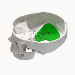 Base de cráneo vista desde la bóveda. Piso medio y posterior.Vista lateral del cráneo en la que puede observarse la bóveda craneal, la base del cráneo y las diferentes estructuras que la conforman.