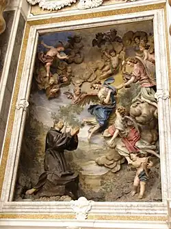 - transepto izquierdo: en el nicho sobre el altar, se encuentra San Pasquale adorando el Santo Nombre, una obra policorroma de Anton Maria Maragliano; en el techo y en los lunetos sobre la entrada arqueada de la capilla lejana, una Ascensión y una Cena en Emaús, frescos de Giovanni Carlone.