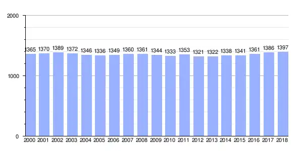 | Gráfica de evolución demográfica de Bastavales entre 2000 y 2018 |