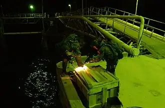 Paralelamente, por mar y aire, desembarcaban tropas de Estados Unidos de los SEAL para asegurar la plataforma petrolífera Mina al-Bakar, y fuerzas polacas del GROM hacían lo propio con la instalación de Khor al-Amaya. Fueron desactivadas cargas explosivas de las plataformas, y fueron capturados 32 irakíes.