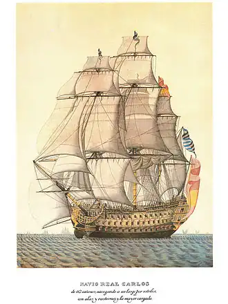 El Real Carlos fue, junto al San Hermenegildo, uno de los dos navíos de primera clase que conformaron la escuadra de Moreno.