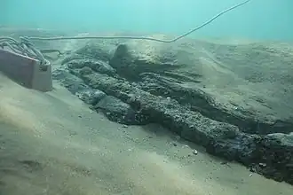 ![]() Restos probables del brulote francés De Marsay, localizado en 2015 cerca de la costa de Sitges. El brulote se hundió durante la batalla, después de haber sido dirigido contra el galeón español La Magdalena y haber acabado desviado hacia el francés Galion-de-Guise, al que prendió fuego. | ||||