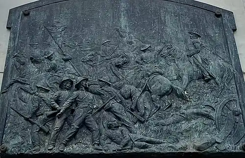![]() Relieve de la Batalla de Cachirí que hace parte del monumento al general Custodio García Rovira. Hecho por Xavier Arnold | ||||