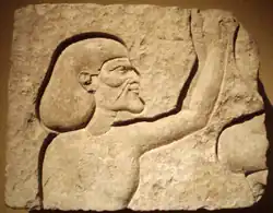 ![]() Ramsés II en la batalla de Qadesh, bajorrelieve en el templo de Abu Simbel. | ||||