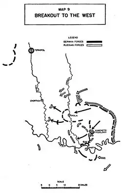 La meta del 1.ᵉʳ Ejército Panzer sería romper el cerco hacia el oeste, llegando a la ciudad de Ternópil (82 kilómetros al este de Lvov) que estaba aún en poder de la Wehrmacht; para lograrlo deberían cruzar 250 kilómetros, atravesando ríos y un terreno lleno de barrizales. Conscientes del riesgo de escape, Zhúkov y Kónev movilizaron rápidamente tropas hacia el sur para cortar el paso a los alemanes, creyendo aún que Hube intentaría llevar sus tropas hacia suelo rumano.