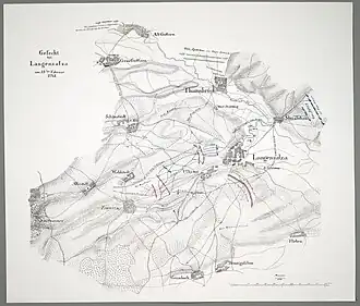 La Batalla de Langensalza tuvo lugar el 10 de febrero de 1761 y fue un enfrentamiento entre las fuerzas francesas y las fuerzas aliadas prusianas y hanoverianas durante la Guerra de los Siete Años. Se luchó cerca de Langensalza en lo que ahora es Alemania Oriental. Un avance aliado sorprendió a los franceses, de lo que resultó la captura de 2000 soldados franceses.