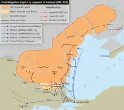 En abril de 791, el emperador bizantinoConstantino VI inició una campaña contra Bulgaria en respuesta a la invasión búlgara en el valle Struma en el año 789, cuando el ejército del kanKardam derrotó a los bizantinos, matando al strategos Filites de Tracia. La campaña fue dirigida hacia el este para distraer la atención del Kan desde el suroeste. Los ejércitos se encontraron cerca de la fortaleza de Provat (a 20 kilómetros al este de Odrin) y los bizantinos se vieron obligados a retirarse, pero su derrota no fue decisiva y en el año siguiente la campaña fue renovada.