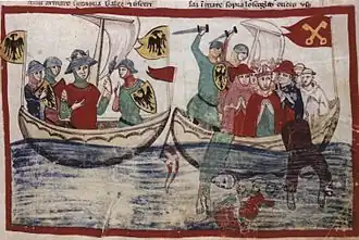 ![]() Representación de la Batalla del Giglio en la "Nova Cronica" de Giovanni Villani (c.1348) | ||||