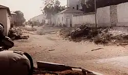 La mayor parte del equipo de asalto se dirigía hacia lugar del primer accidente para la operación de rescate. Antes de llegar al lugar, 90 operadores rangers y de la fuerza DELTA se encontraron bajo fuego intenso. A pesar de la cobertura aérea, el equipo de asalto quedó atrapado hasta la noche. Con un número creciente de heridos buscando refugio, ocuparon varias casas cercanas y confinaron a sus ocupantes durante la duración de la batalla.[23] Afuera, una fuerte brisa levantó nubes de polvo cegadoras.