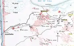 Con la ocupación de Romani el área se convirtió en parte del sector norte o n.º 3 de las defensas de canal de Suez, que originalmente se extendía a lo largo del canal desde Ferdan a Port Said. Los otros dos sectores agrupaban las fuerzas de defensa a lo largo de las secciones central y sur del canal. El n.º 2 o sector central se extendía al sur desde Ferdan al cuartel general de Ismailía y a Kabrit, donde el sector n.º 1 o sector sur empezaba, desde Kabrit a Suez.[34][35]