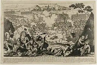 El 29 de junio de 1734 se produjo el choque entre ambos ejércitos, en la , que se saldó con la victoria francesa y la recuperación del territorio por los austriacos durante su contraofensiva, retirándose los imperiales abandonando muertos y heridos en el campo de batalla. Durante la batalla resultó muerto el propio comandante austriaco, duque de Mercy.