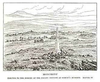![]() Monumento erigido en memoria de los caídos (británicos) en Schuin's Hooghte, Majuba. | ||||