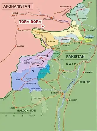 La Batalla de Tora Bora fue un enfrentamiento militar que tuvo lugar en Afganistán en diciembre de 2001, durante las etapas iniciales de la Guerra de Afganistán lanzada después de los Atentados del 11 de septiembre de 2001 en Estados Unidos. Estados Unidos y sus aliados pensaban que el líder de Al Qaeda, Osama bin Laden, se escondía en las escabrosas montañas de Tora Bora, pero a pesar de rebasar las posiciones de los talibanes y Al Qaeda fracasaron en el intento de matar o capturar a bin Laden.