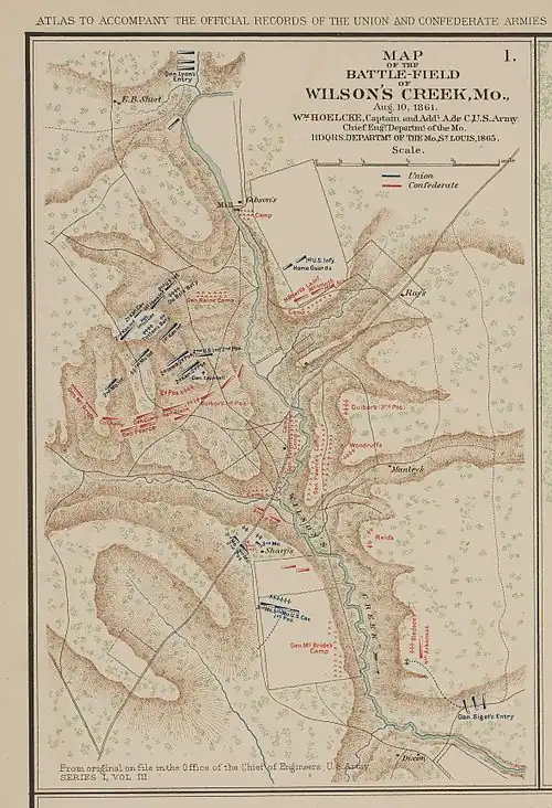 - ↑ «Wilson's Creek Battlefield». American Battlefield Trust (en inglés). 13 de enero de 2009. Consultado el 13 de octubre de 2020.