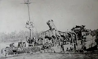 ![]() El SMS Emden varado en la bahía tras la batalla en Isla de Cocos. | ||||