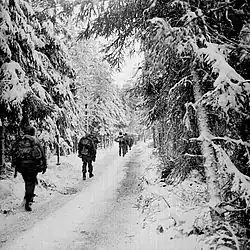 La batalla del Bosque de Hürtgen (en alemán: Schlacht im Hürtgenwald) es el nombre de una de las batallas más feroces libradas entre las tropas estadounidenses y las fuerzas alemanas durante la Segunda Guerra Mundial en el bosque de Hürtgen, y que se convertiría en la más larga disputada por el Ejército de los Estados Unidos no solo durante la guerra, sino en toda su historia.[7] Se disputó entre el 14 de septiembre de 1944, y el 10 de febrero de 1945, sobre un pequeño territorio de apenas 129 km², al este de la frontera belga-alemana.