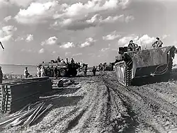 ![]() Vehículos anfibios Buffalo llevando a canadienses cruzando el Escalda en Zelandia, 1944. | ||||