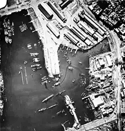 ![]() El acorazado Jean Bart atacado por aviones estadounidenses. | ||||