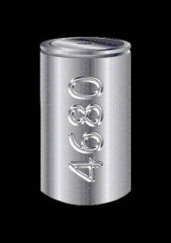 - Celda cilíndrica de iones de litio con un diámetro de 46 mm y una longitud de 80 mm.