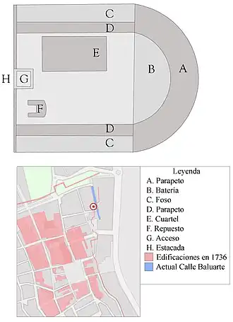 Esta batería fue diseñada en 1743 por el arquitecto Salvador Palau. Se localizaba en los acantilados de la 'Villa Nueva de Algeciras, en la actual Calle Baluarte que tomó su nombre de él. Desde la elevación de esta zona de la ciudad se podía controlar gran parte de la bahía, y se podía cruzar fuego con el Fuerte de Isla Verde. Constaba de un parapeto circular, dos parapetos laterales rodeados por un foso o Glasis, tras el parapeto se encontraban los cuarteles de la artillería, almacén y polvorín; los parapetos laterales se unían entre sí mediante un muro o estacada con una puerta que permitía el acceso al recinto.[2]