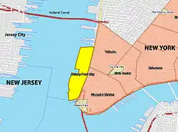 Ubicación del Battery Park City en amarillo -