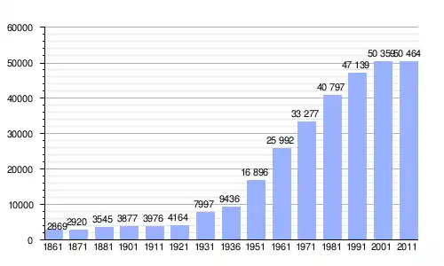 | Gráfica de evolución demográfica de Battipaglia entre 1861 y 2011 |
