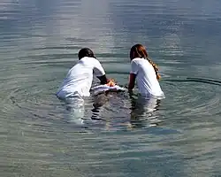 El bautismo tiene lugar por inmersión total en agua, después del nuevo nacimiento y la profesión de fe.[3] El creyente es sumergido en agua como símbolo de su muerte espiritual y su resurrección es simbolizada cuando emerge del agua.[4]