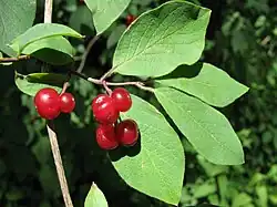 Las drupas se distinguen de forma variable de las bayas botánicas. Las drupas son frutos carnosos producidos a partir de un ovario (normalmente) de una sola semilla con una capa leñosa dura (llamada endocarpo) que rodea la semilla. Algunos ejemplos conocidos son las frutas de hueso del género Prunus (melocotónes, ciruelas y cereza), aceitunas, coco, dátiles, laurel y las especies de Persea'. Algunas definiciones hacen que la mera presencia de un endocarpo internamente diferenciado sea la característica definitoria de una drupa;[4] otras califican la naturaleza del endocarpo requerida en una drupa, por ejemplo definiendo que las bayas deben tener un endocarpio de menos de 2 mm de grosor.[5] El término "drupáceo" se utiliza para los frutos que tienen la estructura y la textura general de una drupa,[6] sin cumplir necesariamente la definición completa. Otros frutos parecidos a las drupas con una sola semilla que carecen del endocarpio pétreo son el espino cerval de mar (Hippophae rhamnoides, Elaeagnaceae), que es un aquenio, rodeado por un hipanto hinchado que proporciona la capa carnosa.[7] Los frutos de las especies de Coffea se describen como drupas o bayas.