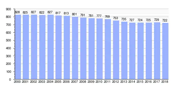 | Gráfica de evolución demográfica de Bealo (parroquia) entre 2000 y 2018 |