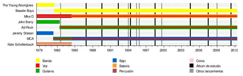 - Ad-Rock – voces, guitarras y programaciones en caja de ritmo y sampler (1982-2012)