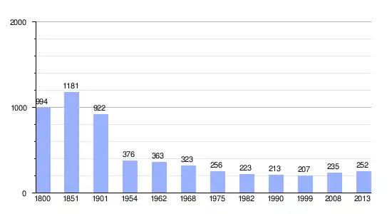 Los datos demográficos contemplados en este gráfico de la comuna de Beauchêne[4] se han cogido de 1800 a 1999 de la página francesa EHESS/Cassini, y los demás datos de la página del INSEE.[5]