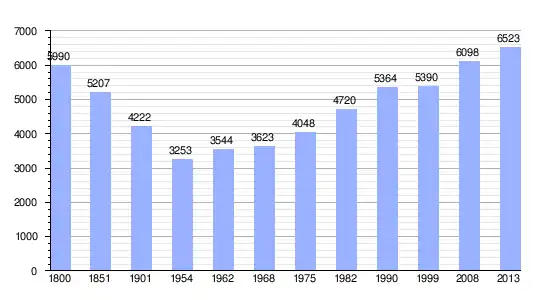 Los datos demográficos contemplados en este gráfico de la comuna de Beaufort-en-Vallée[4] se han cogido de 1800 a 1999 de la página francesa EHESS/Cassini, y los demás datos de la página del INSEE.[5]