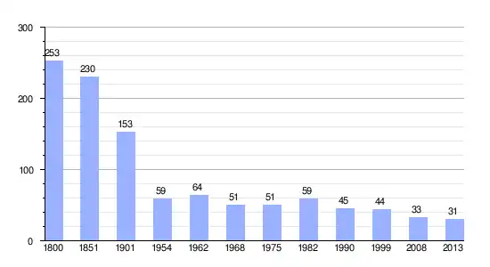 Los datos demográficos contemplados en este gráfico de la comuna de Beaulieu[4] se han cogido de 1800 a 1999 de la página francesa EHESS/Cassini, y los demás datos de la página del INSEE.[5]