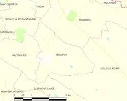 Beaupuy es una población y comuna francesa, ubicada en la región de Mediodía-Pirineos, departamento de Gers, en el distrito de Auch y cantón de L'Isle-Jourdain (Gers).