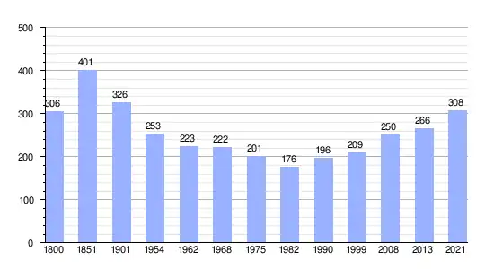 | Gráfica de evolución demográfica de Beauvau entre 1800 y 2021 |