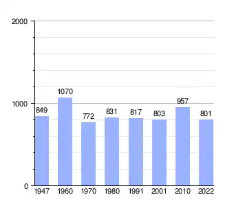 | Gráfica de evolución demográfica de Beazley[2] entre 1947 y 2022 |