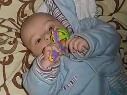 Un bebé es un ser humano de una edad todavía muy corta,[1] que no puede hablar ni tampoco caminar y generalmente está en período de amamantamiento. Un bebé recién nacido es un «neonato» y suele llorar al nacer. Es totalmente dependiente de sus progenitores o tutores, necesitando de su atención para poder satisfacer sus necesidades básicas o para realizar actividades elementales. Ante cualquier necesidad o incomodidad, el bebé llorará para atraer la atención de los adultos que le rodean. Los bebés también son conocidos como lactantes, rorros, guagua,[2] huahua,[3] wawa,[4] beibi (hispanización de la palabra inglesa, «baby»),[5] entre otros.[6] Un bebé puede tener alrededor de 300 huesos. Los bebés recién nacidos no pueden soltar lágrimas debido a que las Glándulas Lagrimales todavía no se desarrollan.
