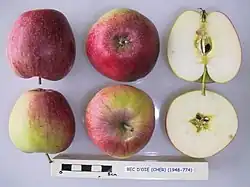 ![]() La variedad de manzana 'Bec d'Oie' con secciones cruzadas. | ||