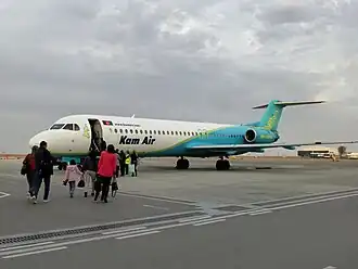 ![]() Un Fokker 100 de Bek Air mientras llevaba la marca de la aerolínea afgana Kam Air. | |||||