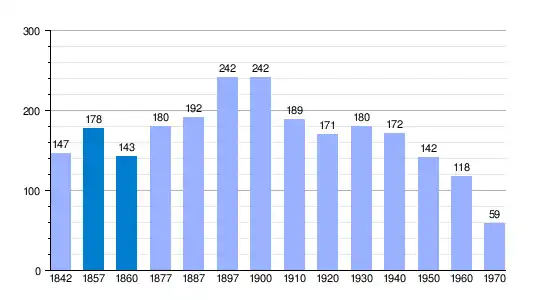 | Gráfica de evolución demográfica de Bel[2] entre 1842 y 1970 |