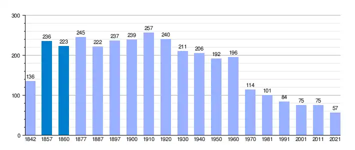 | Gráfica de evolución demográfica de Belbimbre[2] entre 1842 y 2021 |