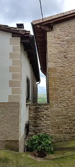 En muchos pueblos de la Navarra norte y media las casas dejan entre unas y otras un espacio libre. Esa disposición evita los problemas que produce la existencia de un muro medianero, proporciona un lugar para el desagüe de las cubiertas y, en las construcciones de madera, protege de la propagación del fuego en caso de incendio. Estos vanos entre casas se mantienen también en algunas poblaciones mayores, en las que son más habituales la casas con paredes medianeras.