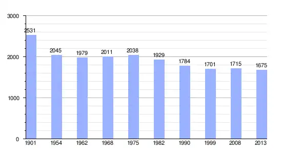 Los datos entre 1800 y 2013 son el resultado de sumar los parciales de las seis comunas que forman la nueva comuna de Belforêt-en-Perche, cuyos datos se han cogido de 1800 a 1999, para las comunas de Eperrais,[4] La Perrière,[5] Le Gué-de-la-Chaîne,[6] Origny-le-Butin,[7] Saint-Ouen-de-la-Cour[8] y Sérigny[9] de la página francesa EHESS/Cassini. Los demás datos se han cogido de la página del INSEE.[10]