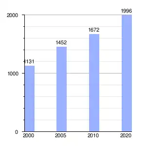 Cuenta con 1996 habitantes lo que representa un incremento promedio de 1.8% anual en el período 2010-2020 sobre la base de los 1672 habitantes registrados en el censo anterior. Ocupa una superficie de 0.9176 km², lo que determina al año 2020 una densidad de 2175 hab/km².[7]