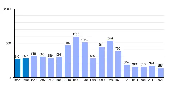 | Gráfica de evolución demográfica de Bellmunt del Priorat[14] entre 1857 y 2021 |
