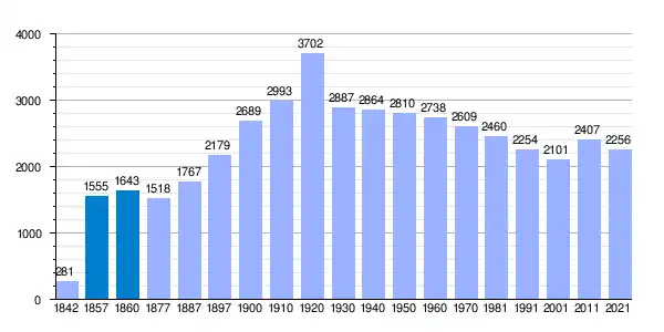 | Gráfica de evolución demográfica de Bellvís[3] entre 1842 y 2021 |