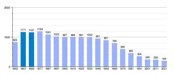 | Gráfica de evolución demográfica de Belmonte de Gracián[6] entre 1842 y 2021 |