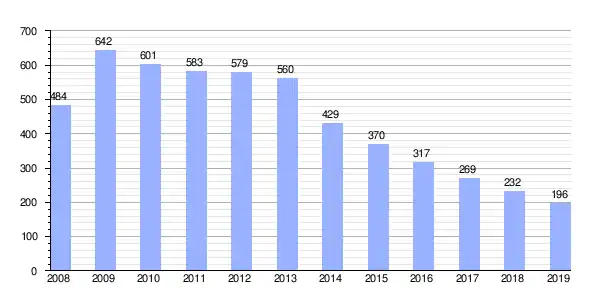 | Gráfica de evolución de Deuda viva del Ayuntamiento de Benalúa de las Villas entre 2008 y 2019 |