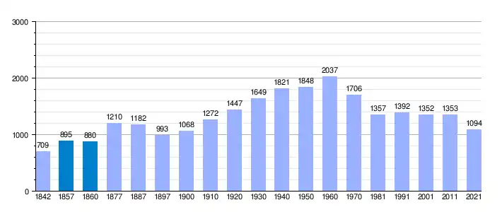 | Gráfica de evolución demográfica de Benalúa de las Villas[8] entre 1842 y 2021 |